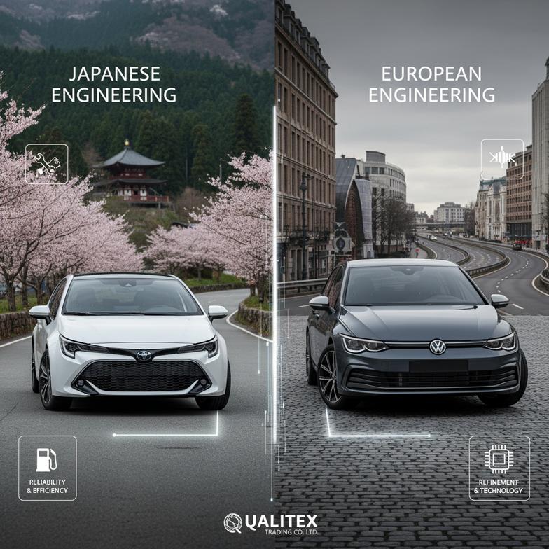 Corolla vs Golf Mk8: Which Small Car Suits Your Driving Style and Budget? Qualitex, November 20, 2025 Introduction If you’re weighing up two of the world’s most recognisable small cars — Toyota’s long-standing Corolla and Volkswagen’s new Golf Mk8 — you’re asking a very practical and very popular question. As a seasoned exporter at Qualitex Trading Co. Ltd, I see this decision from three angles: everyday usability, driver enjoyment and long‑term ownership costs — plus how easy it is to source and export these cars to buyers in Europe, North America and beyond. Below I compare the two, place them in the wider context of Japanese, European and American automotive philosophies, and give practical advice for international buyers. History and global reputation Japanese cars: reliability and practicality Japan built its reputation on durability, sensible packaging and continuous incremental engineering improvements. Manufacturers like Toyota perfected the small‑car recipe: efficient naturally aspirated engines, simple but robust transmissions (including CVTs), and interiors designed for longevity. That approach made cars like the Corolla best‑sellers in markets such as Australia and across Asia. European cars: craftsmanship and performance DNA European hatchbacks — led historically by the Golf — emphasise engineering refinement, driver feedback and a premium cabin feel. The Golf lineage is synonymous with balanced handling, sophisticated chassis setups and advanced driver assistance systems. European brands often prioritise on‑road dynamics and technology as differentiators. American cars: power and character The American tradition focuses on power, torque and packaging for long‑distance comfort. Muscle cars and large pickups reflect a different set of priorities: straight‑line performance, big engines and a distinct cultural identity. Engineering philosophies (how they shape the car you actually drive) Japanese engineering: reliability, efficiency, and the kei/tuning culture Japanese small cars generally aim for simplicity and reliability. You’ll find naturally aspirated engines that are predictable, CVT gearboxes for smooth urban driving and strong aftermarket support in Japan for tuning and parts. Hybrid systems are also a major focus in the Japanese market. European engineering: chassis refinement and tech European rivals often use turbocharged smaller‑displacement engines, multi‑link rear suspensions, and a greater emphasis on driver assistance and infotainment technology. The Mk8 Golf, for example, pairs a turbo 1.4‑litre engine with a multi‑link rear suspension and a large digital instrument cluster — all tuned for a composed on‑road character. American engineering: torque and comfort American cars (and their influence) bring heavier chassis, larger engines, and a focus on highway manners and comfort. For buyers moving between continents, understanding these trade‑offs is key. Model comparison: Corolla vs Golf Mk8 (practical rundown) Pricing and positioning Toyota Corolla Ascent Sport hatch (Australia): base pricing begins in the mid‑20k AUD range; a well‑optioned example can approach AU$27,000 on‑road. The Corolla’s proposition: a value‑for‑money, no‑nonsense small car geared toward reliability and low running cost. Volkswagen Golf Mk8 110 TSI Life (mid‑spec): starting significantly higher in many markets — for the example here, the Life grade sits around AU$34,250 before options and can approach AU$39,000+ with packs such as sound/vision (Harman Kardon), comfort and style (panoramic roof, sport seats, head‑up display). Supply may be constrained initially due to global semiconductor shortages. Powertrain and driving Corolla: a naturally aspirated 2.0‑litre 4‑cylinder with a CVT (often calibrated to simulate 10 gears). It delivers usable power and predictable response; it’s competent for daily driving but can sound thrashy when revved. The CVT is smooth in normal use but can feel clunky in low‑speed manoeuvres. Golf Mk8: turbocharged 1.4‑litre TSI (in this configuration) with an 8‑speed torque‑converter automatic (VW moved away from the dual‑clutch in some markets). The turbo offers stronger mid‑range torque and a quieter, more accessible power delivery. On the road the Golf feels more refined and sporty. Ride, handling and comfort Corolla: compact, easy to place in traffic, predictable steering with a light feel. Ride is generally good, though larger bumps can be felt in the cabin. Rear seat space and entry can be a little tight on some hatch versions. Golf Mk8: feels more composed over varying surfaces thanks to a multi‑link rear suspension and more sophisticated damping. The cabin is quieter and more comfortable for passengers, and rear occupants generally enjoy better headroom and rear climate/USB provision in many trims. Interior, tech and safety Corolla: straightforward, durable interior with an 8‑inch infotainment screen supporting Apple CarPlay and Android Auto. The base model prioritises hard‑wearing materials over outright refinement. Safety systems (autonomous emergency braking, pedestrian detection) are present but higher‑end active safety items like blind‑spot monitoring may be absent on entry variants. Golf Mk8: more upmarket cabin, larger higher‑resolution touchscreen, a configurable digital instrument cluster, wireless phone mirroring in many markets, and a stronger suite of driver assistance (VW’s IQ.DRIVE with lane‑assist, junction assist and tyre pressure monitoring). The Mk8 often has extra airbags and convenience features as standard on mid grades. Running costs and ownership Fuel consumption on test examples can be comparable — Golf showing figures around 6.0 L/100 km and Corolla about 6.2 L/100 km in mixed driving. However, overall servicing and parts costs for the Golf are generally higher. In the example comparison, projected servicing costs over the first thr